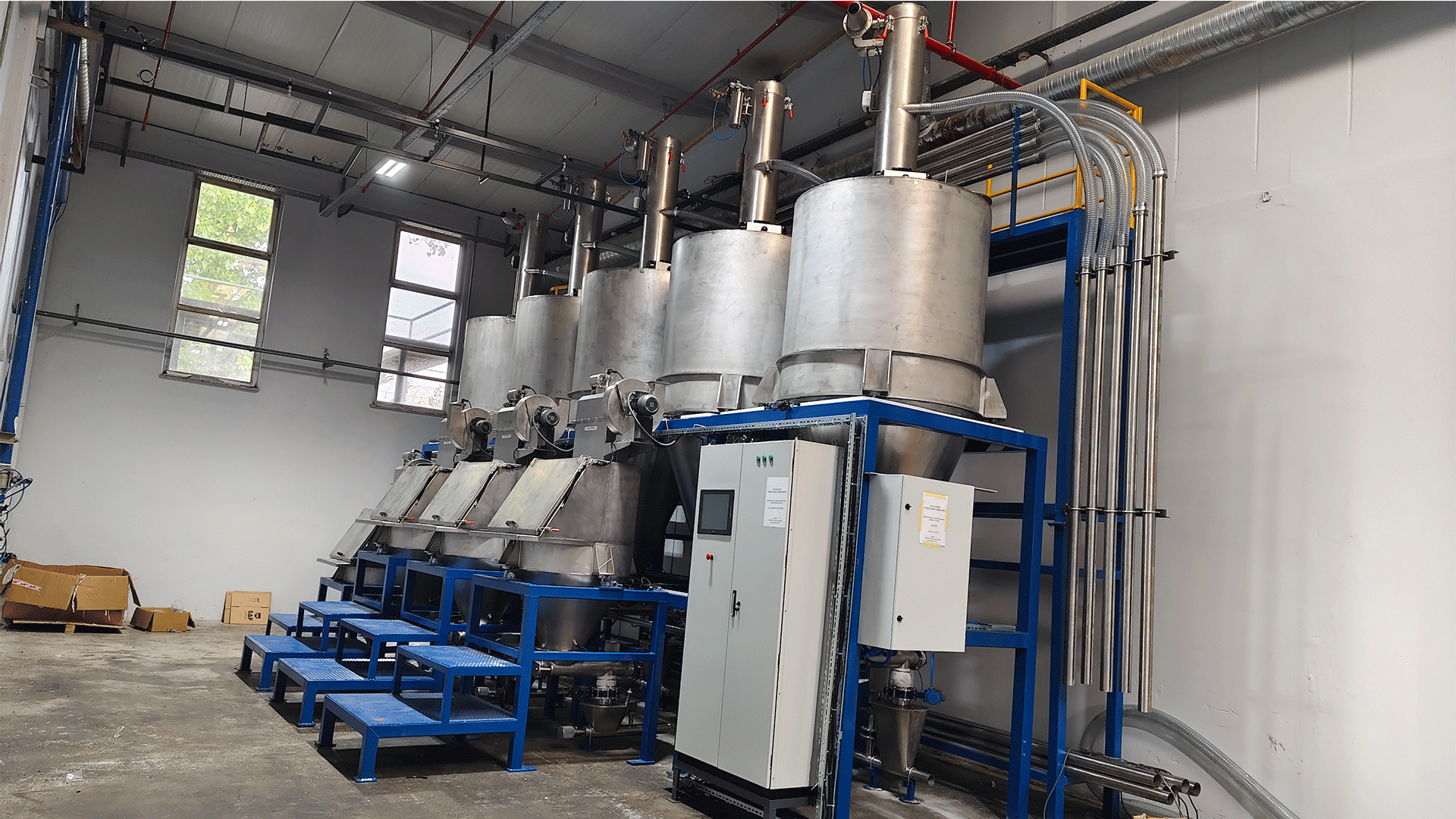 Kapalı tozsuz bir süreçte torba boşaltma istasyonlarından dökme tozların ölçülü zemin seviyesinde aktarılmasını sağlayan Esnek Helezon Taşıma Sistemi.
